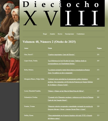 DIECIOCHO XVIII. Volumen 48, Número 2 (Otoño de 2025)